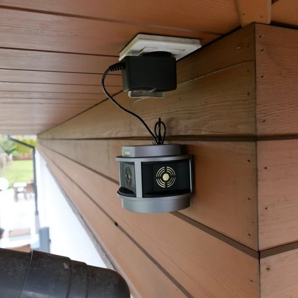 L'appareil combine deux méthodes de répulsion : l'émission continue d'ondes ultrasonores avec changement automatique de fréquence et un panneau stroboscopique équipé de LED haute intensité, activé par un radar de mouvement intégré. Lors de la détection d'un nuisible, le panneau génere une série de cinq flashs intenses par seconde, qui effraient davantage l'intrus.
