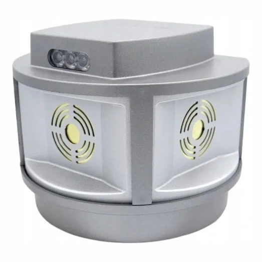 Trois haut-parleurs piézoélectriques disposés perpendiculairement assurent un angle d'action de 270° et une portée allant jusqu'à 200 mètres, couvrant efficacement une surface pouvant atteindre 3000 m2. La fréquence variable des ultrasons empêche les rongeurs de s'habituer à l'appareil.
