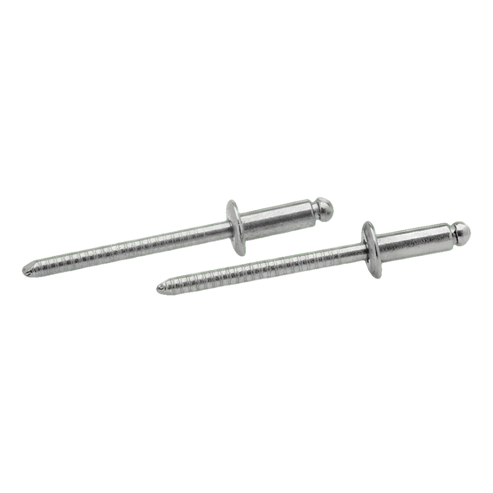 La surface cannelée de la tige assure un positionnement sûr dans la riveteuse et un déroulement stable du processus de rivetage. Grâce à l'utilisation d'acier inoxydable austénitique AISI 304, le rivet se caractérise par une haute résistance à la corrosion, ce qui permet de l'utiliser aussi bien à l'intérieur qu'à l'extérieur des bâtiments — sans risque de formation de rouille et de décoloration sur les éléments assemblés.