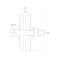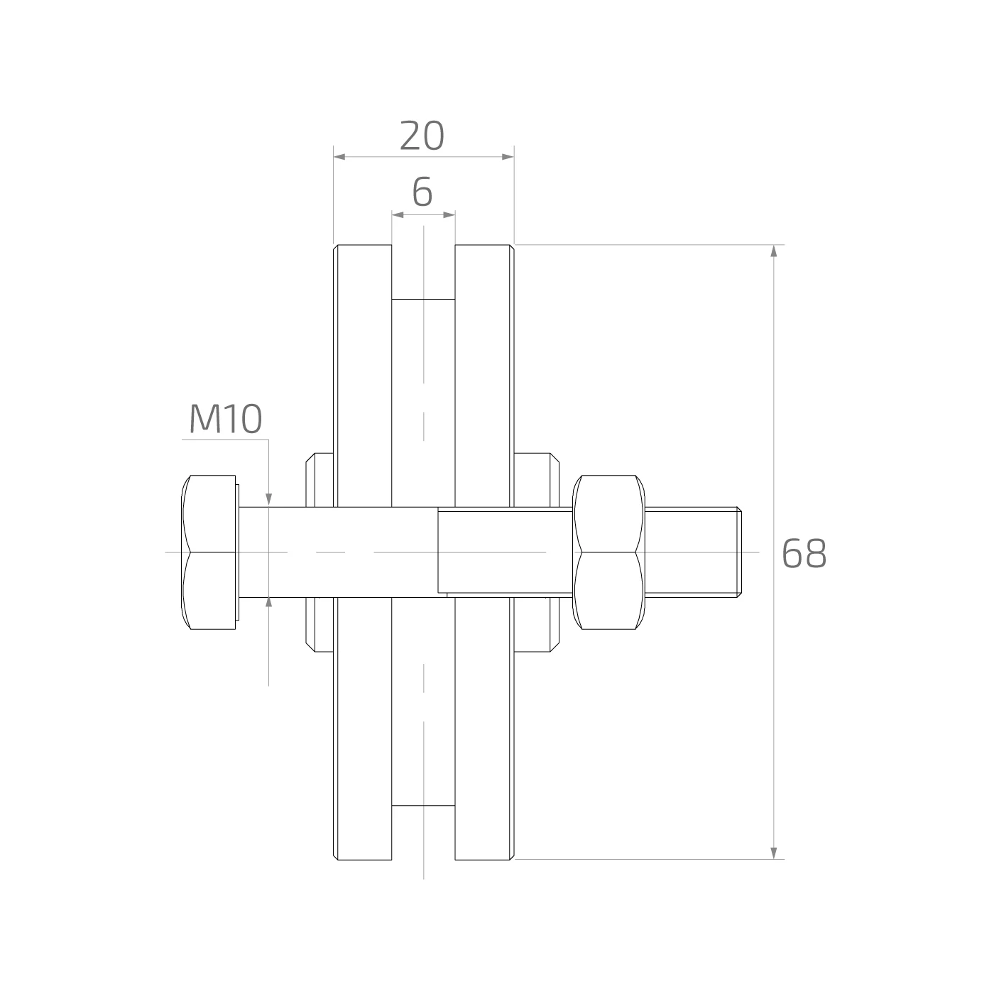 La roulette fonctionne avec des rails type profilé en T d'une largeur d'aile de 6 mm et supporte des charges jusqu'à 150 kg, ce qui permet son utilisation sur des portails coulissants de masse moyenne et importante. Grâce à sa construction compacte (⌀68 × 20 mm) et son faible poids propre (0,5 kg), elle est facile à stocker et transporter sur le chantier.