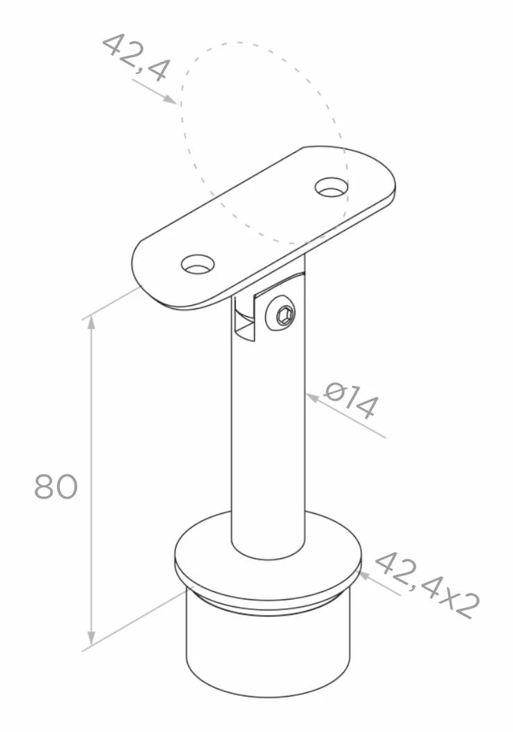 Support de main courante articulé collé fi 42,4 mm, tige fi 14 mm, H80, AISI 304, satin, système 42,4 mm (24 pcs)