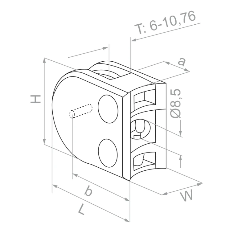 - Le support nécessite l'utilisation de joints en caoutchouc — choisissez l'épaisseur de joint adaptée a l'épaisseur du verre a monter