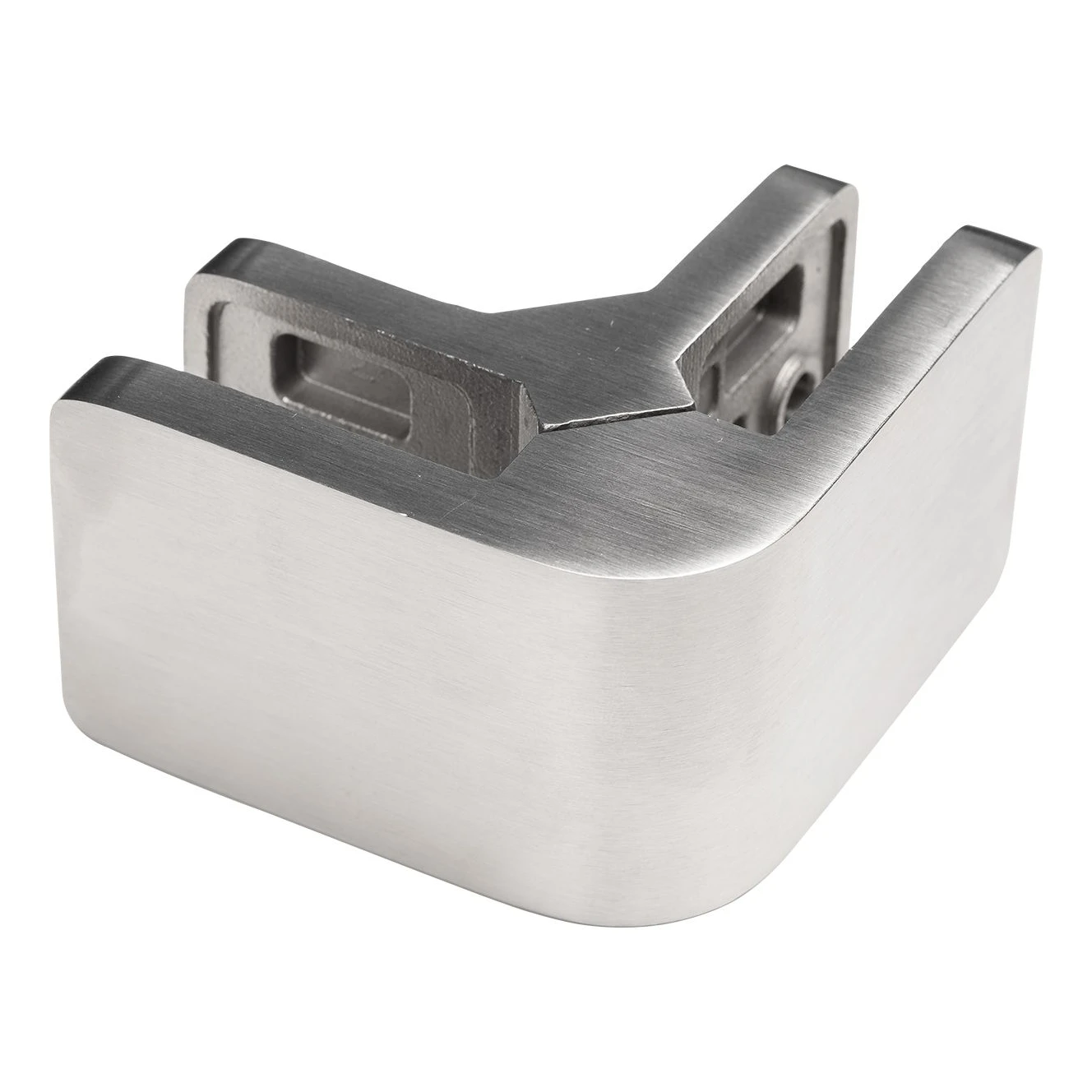 Fixation d'angle pour verre 90° carrée 53×45 mm – acier AISI 304, satiné