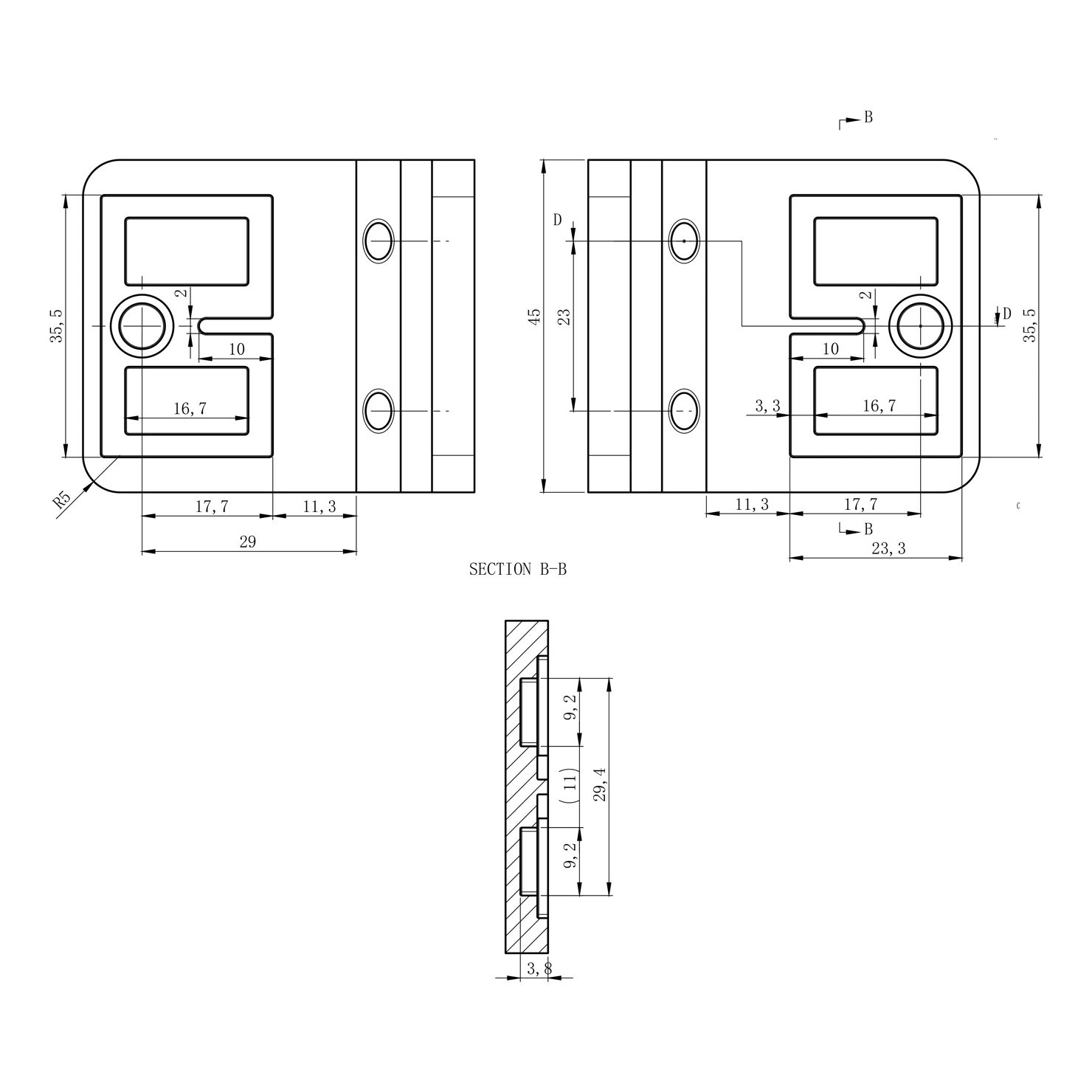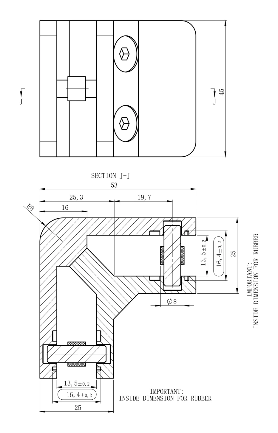 - Largeur de la fente intérieure (pour joint) : 16,4 ±0,2 mm
