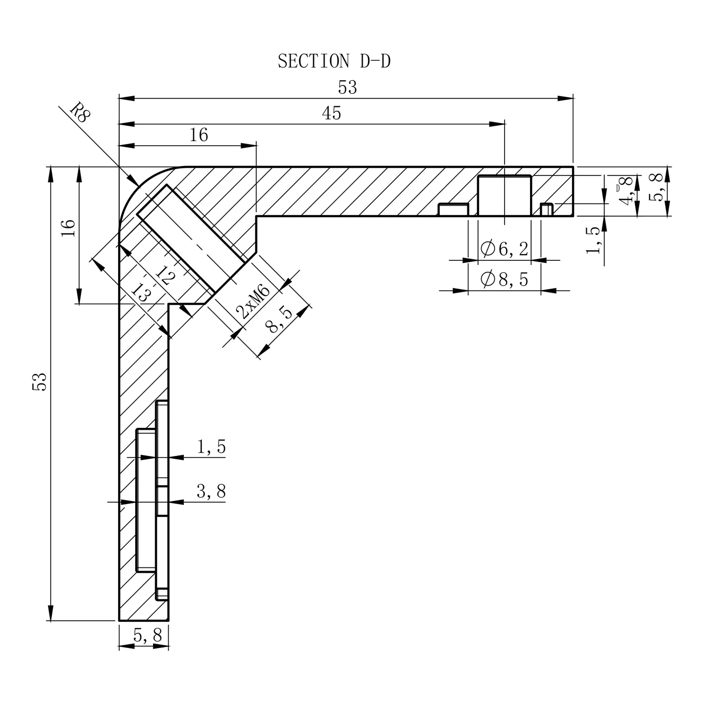 La fixation d'angle pour verre 90° aux dimensions 53 × 45 × 26 mm est une solution professionnelle pour assembler deux panneaux de verre à angle droit dans des garde-corps et des cloisons en verre. Fabriquée en acier inoxydable AISI 304 avec une finition satinée, elle garantit une résistance durable à la corrosion et un aspect esthétique moderne. La fixation est compatible avec le verre trempé et feuilleté d'une épaisseur de 6 à 10,76 mm, ce qui couvre les configurations les plus couramment utilisées dans la construction.