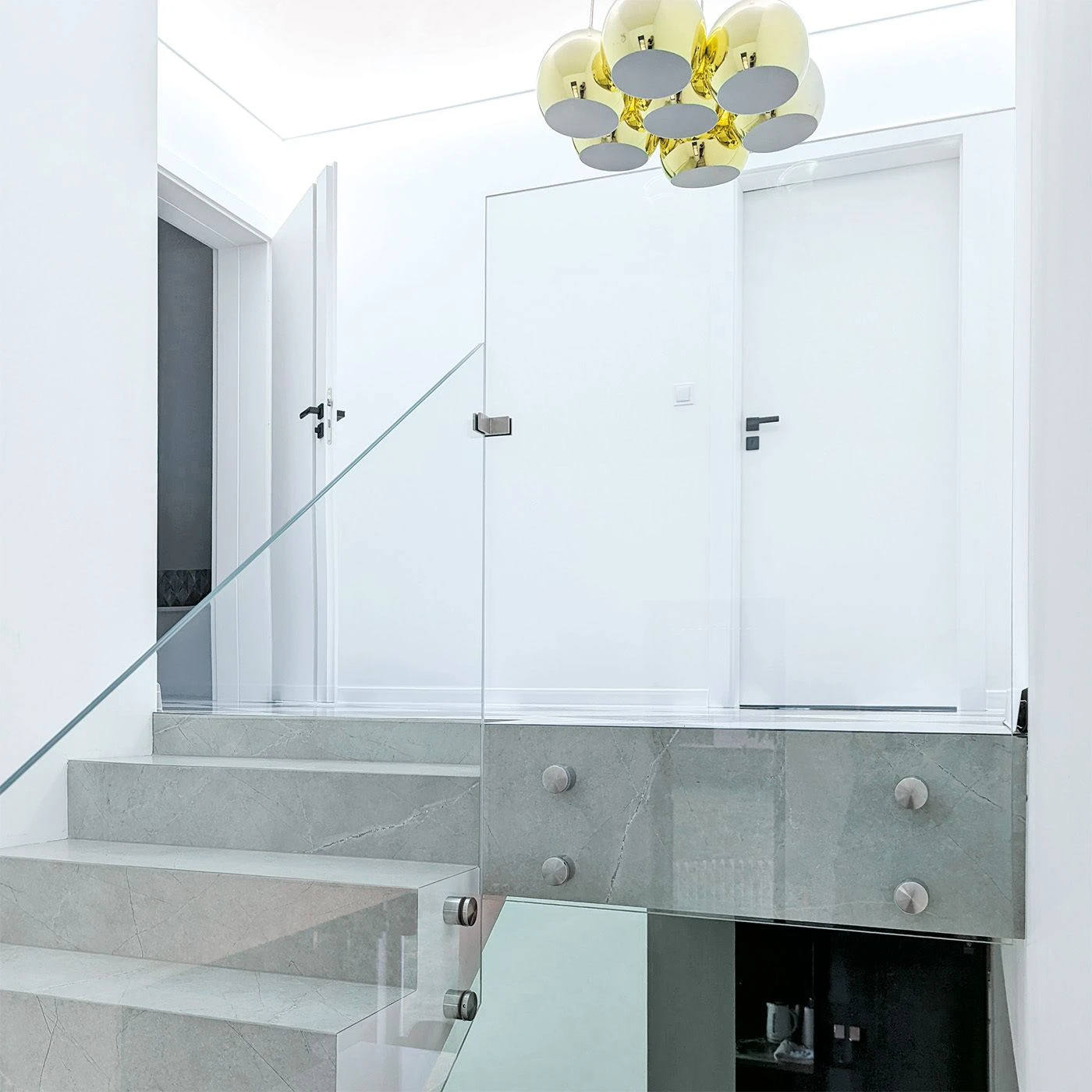 La fixation d'angle est un élément clé influençant la stabilité et la sécurité du garde-corps en verre. En assemblant deux panneaux à 90°, elle empêche efficacement le glissement du verre, rigidifie la structure et réduit considérablement le risque de dommages lors de l'utilisation. Le montage de la fixation élimine le recours à des cadres ou profilés supplémentaires — elle permet de créer des solutions de garde-corps minimalistes et sans cadre sur les balcons, terrasses, cages d'escalier et dans les établissements recevant du public.