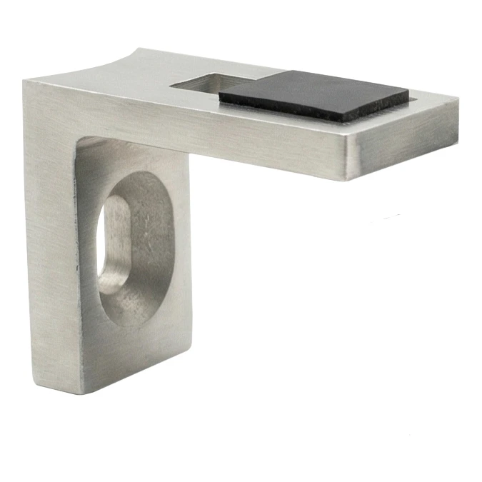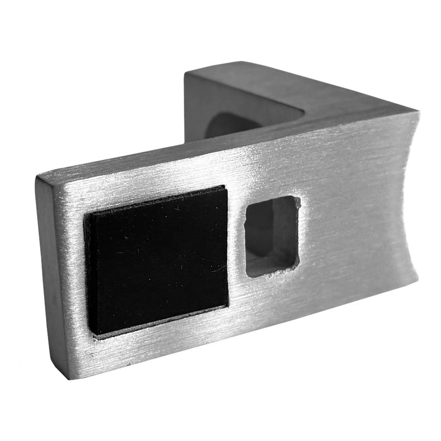 L'acier inoxydable AISI 304 assure une haute résistance à la corrosion, aux dommages mécaniques ainsi qu'à l'action de l'humidité — le support conserve ses propriétés d'utilisation pendant de nombreuses années même en cas d'usage intensif quotidien. La finition satinée donne à l'élément un aspect moderne, s'harmonisant parfaitement avec le verre et les autres composants de la balustrade, tout en masquant efficacement les petites rayures et traces de doigts.