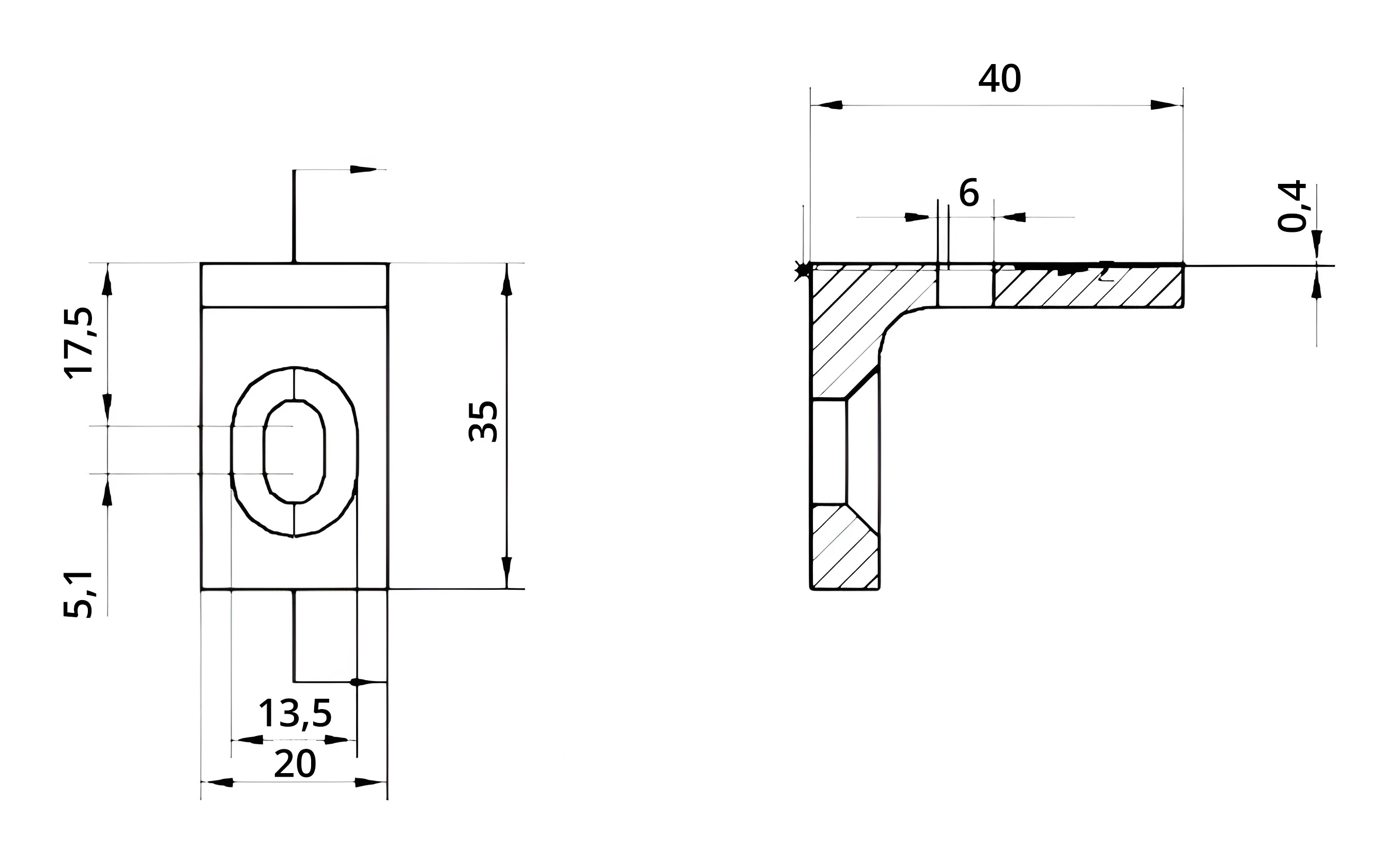 - Longueur du trou oblong : 5,1 mm