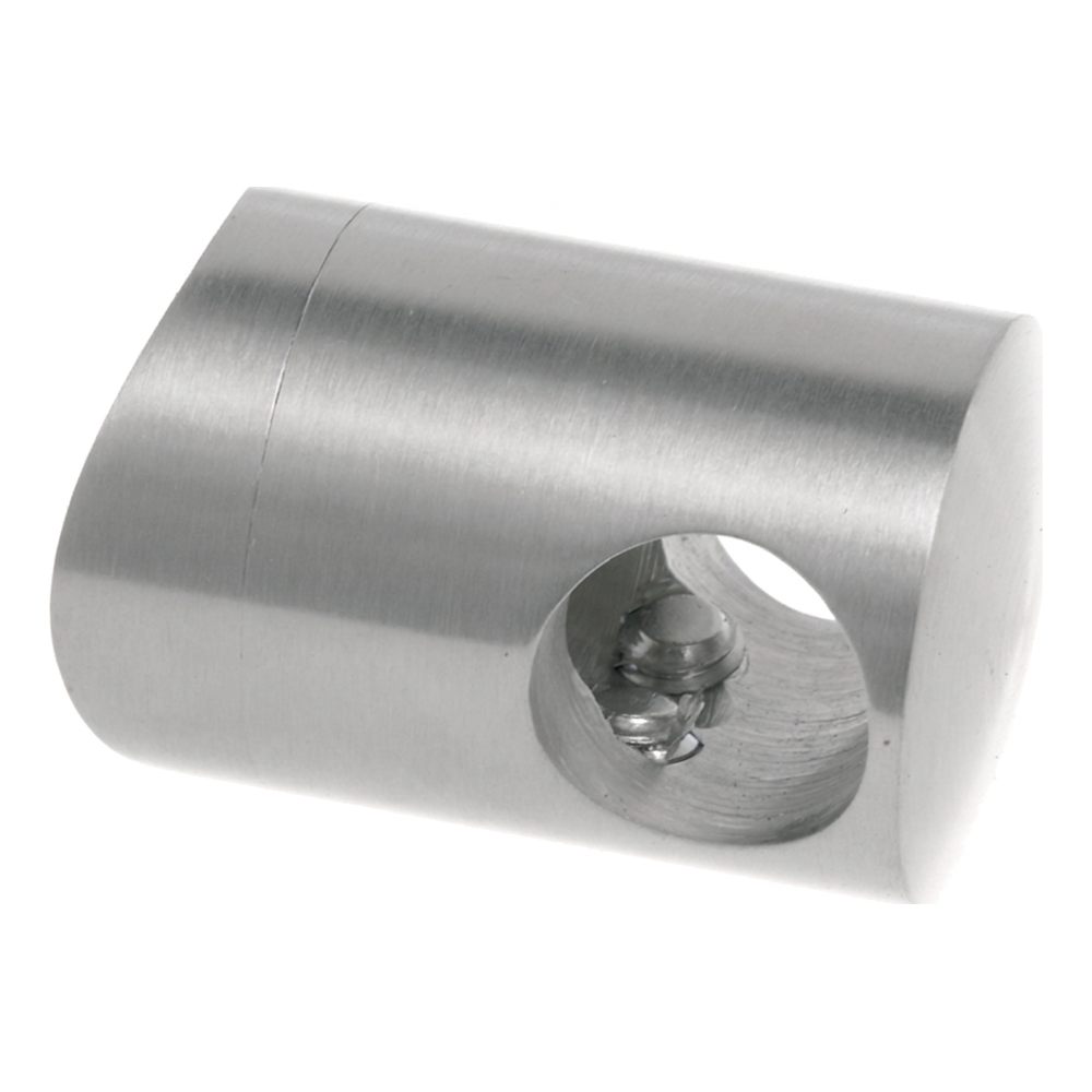 Le support traversant est destiné aux systèmes de balustrades basés sur un tube porteur de diamètre 42,4 mm. Il permet le guidage des barres de remplissage fi 12 mm de manière traversante — la barre traverse le support de part en part, ce qui permet de créer rapidement et précisément des remplissages de balustrades. La finition satinée s'harmonise parfaitement avec les autres éléments en acier inoxydable brossé, assurant un aspect cohérent et moderne de l'ensemble de la construction.