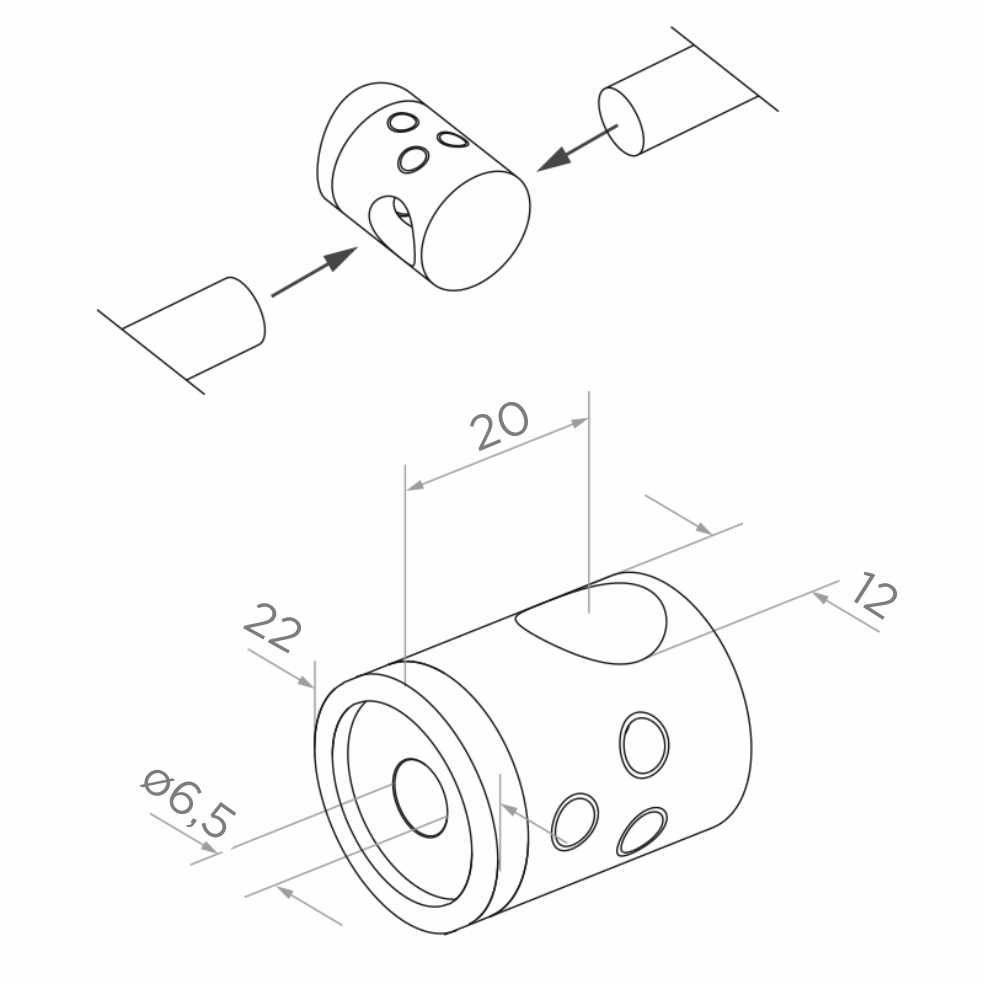 Le support se monte directement sur le tube principal de la balustrade et permet le passage traversant de la barre de remplissage, ce qui accélère considérablement le montage et facilite l'obtention d'espacements réguliers et répétables entre les barres. Les vis de serrage intégrées assurent une fixation sûre et durable de la barre à l'intérieur du support.