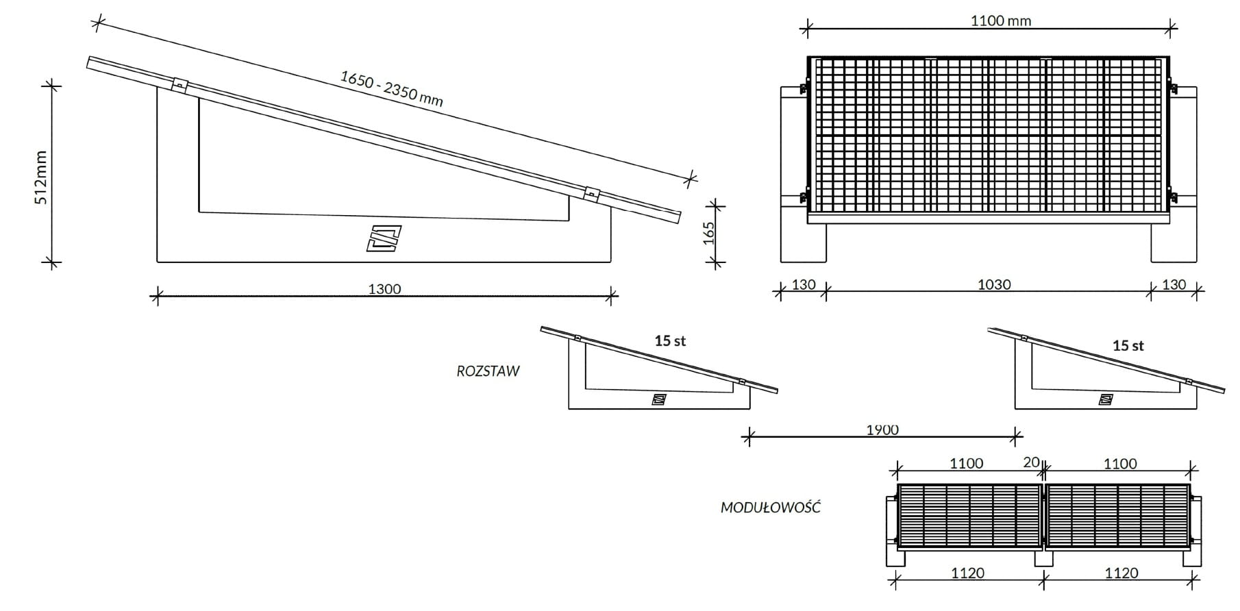 Montage sans perçage – les blocs de lest éliminent la nécessité de percer la couverture du toit. Le poids du béton assure un ancrage stable des panneaux même en cas de vent fort, protégeant l'installation contre les dommages mécaniques.