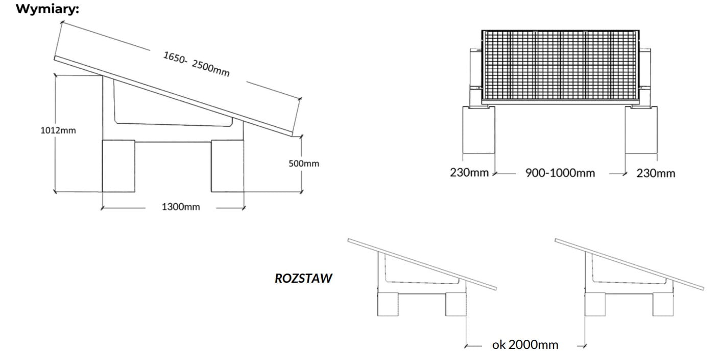 Montage sans intervention sur le sol – le système de lestage utilise la masse des blocs en béton comme charge stabilisatrice, éliminant la nécessité de réaliser des fondations ou des ancrages au sol. L'installation est ainsi plus rapide, moins coûteuse et entièrement réversible.