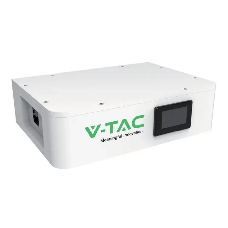 Stockage d'énergie modulaire haute tension V-TAC OHS25K-100 d'une capacité de 25,60 kWh. Base + (5*5,12kWh) VT-OH-5K LiFePO4 5,12V 100Ah modules de batterie + module de contrôle BMS avec câblage inclus.