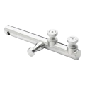 Le système de montage universel permet d'utiliser le verrou avec du verre trempé et feuilleté d'une épaisseur de 10 à 12,76 mm. La fixation se fait par vissage — deux points de fixation avec des caches décoratifs ø20 mm assurent un ancrage stable sur la vitre.