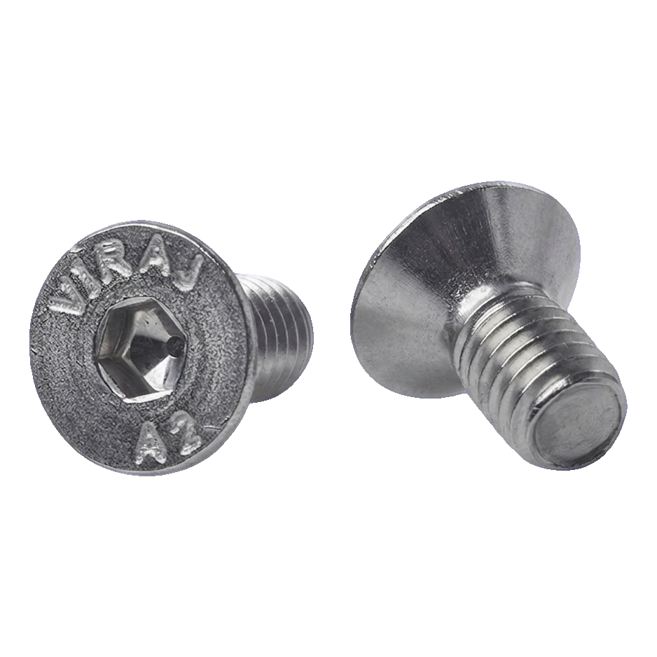 L'acier inoxydable AISI 304 (A2) offre une haute résistance à la corrosion – la vis convient aussi bien à l'intérieur des bâtiments qu'à l'extérieur, en contact avec l'humidité et les facteurs atmosphériques. Le fabricant Viraj est un fournisseur reconnu d'éléments de fixation en acier inoxydable.